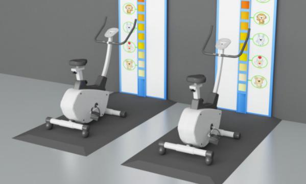 展項由心臟模型、肺模型、模型后面設置LED面板、玻璃罐、腳踏車模型組成,腳踏車扶手設置心跳感應裝置。開始心臟和肺以正常的速度泵動以及緩慢的收縮和擴張。隨后觀眾開始騎行,觀眾騎得越快,運行速度就越快,肺部模型擴張和收縮就越快,這些速度反映出它們產生能量的多少。同時在腳踏車屏幕內顯示觀眾的時時心率。在體驗的過程中應該可以感覺到模型的呼吸頻率和心率的變化,并且了解到運動影響我們的心肺功能、運動量越大心臟跳動頻率越快,肺部呼吸頻率也越快、墻面LED面板會隨著運動能量亮起的高度越來越高。